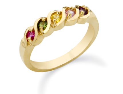 Yellow gold mother's ring with 3 - 8 genuine or synthetic stones.