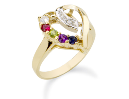 Yellow gold mother's ring with 3 - 8 genuine or synthetic stones.