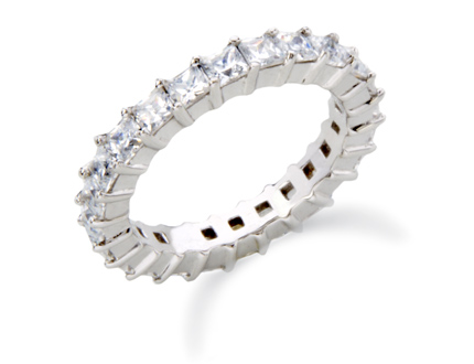 White gold princess cut diamond eternity band.