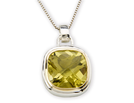 Sterling silver and yellow gold yellow quartz pendant.