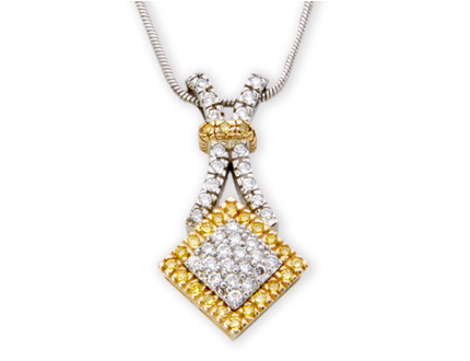 White and yellow gold signature collection pendant featuring both yellow and white diamonds.