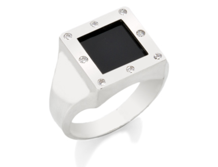White gold onyx and diamond mens ring.